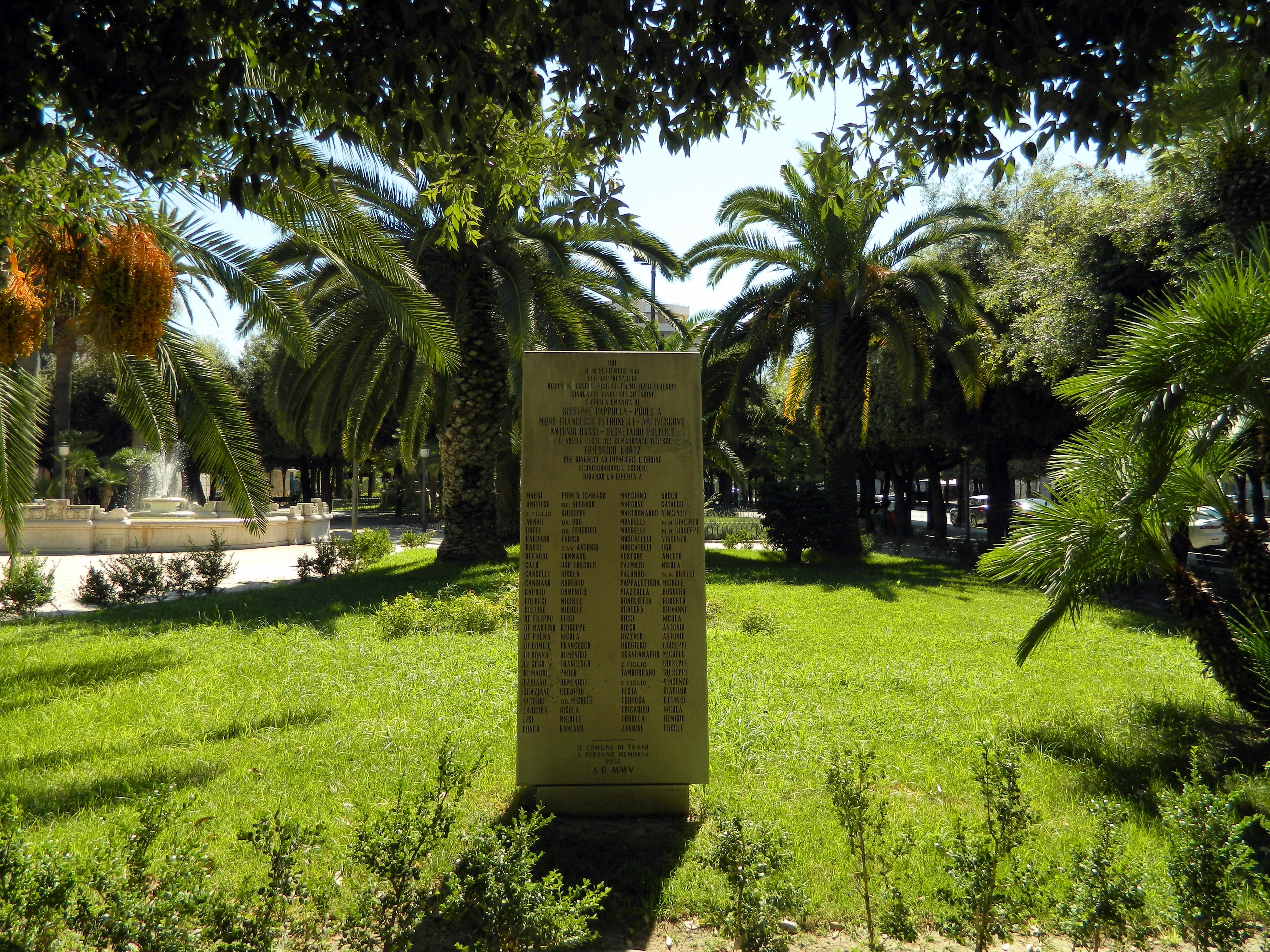 Unverhofft entdeckte ich vor ein paar Tagen in der süditalienischen Hafenstadt Trani ein Beispiel hierfür. Auf dem dortigen Platz der Republik steht gemütlich unter Palmen und in Hörweite eines erfrischenden Springbrunnens dieses Denkmal: