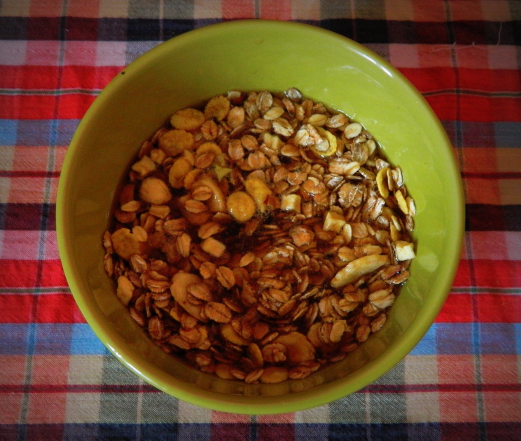 Für die Energie sorgt ein Müsli. Keine Cornflakes oder Fruit Loops oder so Kinderkram, sondern richtiges Müsli mit Haferflocken.
