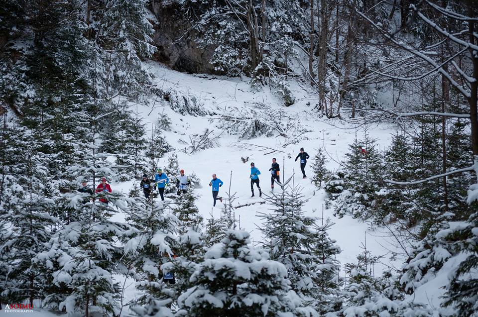 Der Startschuss ist eine Erlösung. Endlich kommt Bewegung in den Körper, das Blut zirkuliert schneller und wärmt die schon fast abgefrorenen Glieder. Zügig geht es durch die engen Gassen der Altstadt und schon nach 2 km auf einen stetig ansteigenden Wanderweg. Eine wunderschöne Waldlandschaft mit tiefen Tälern. Es beginnt zu schneien. Dichte Flocken kommen mir entgegen und bedecken bald den Boden. Die ersten Läufer werden zu Spaziergängern, aber ich bin noch fit.