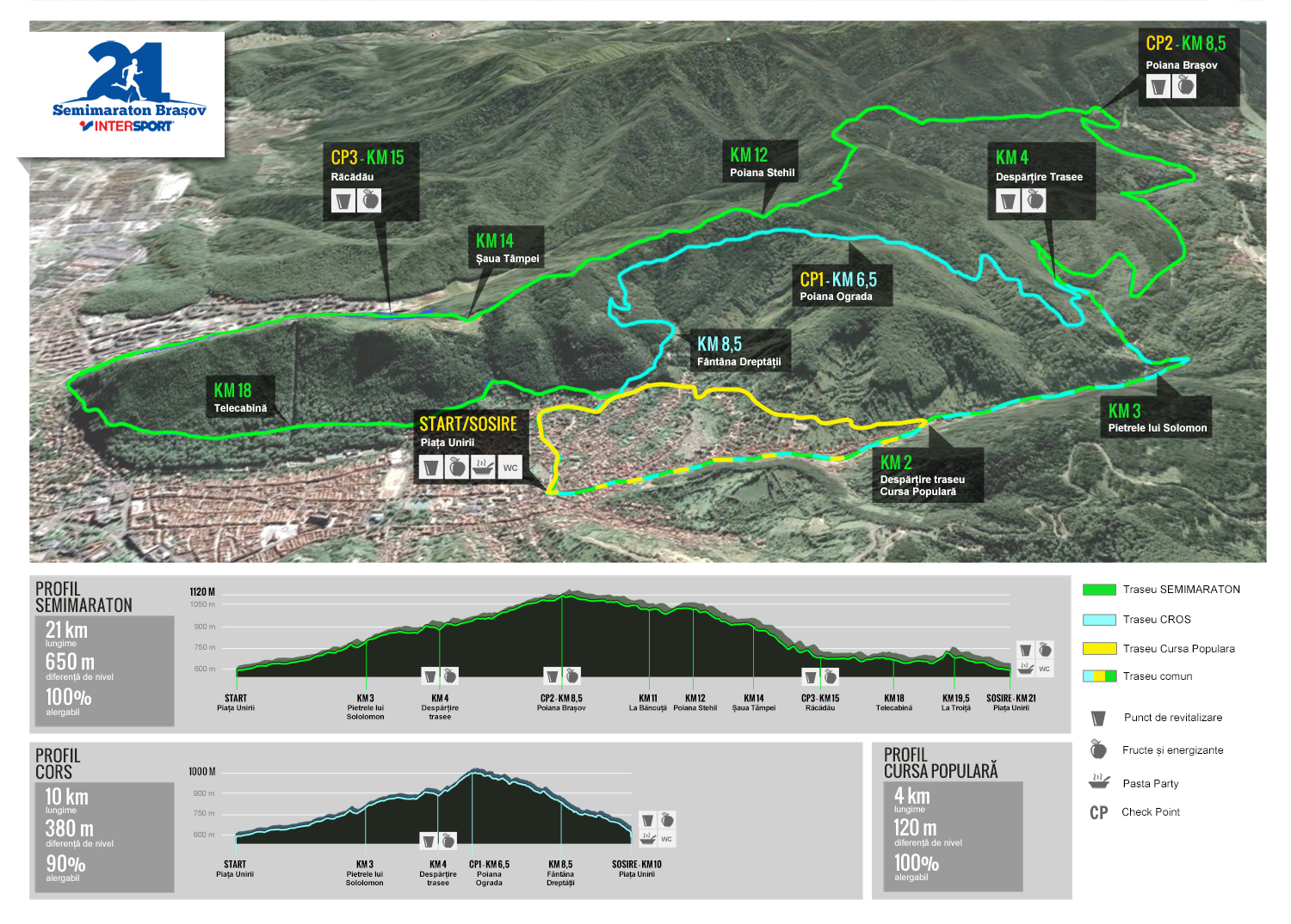 Dass der Halbmarathon in Brașov (Kronstadt) in Rumänien ein bißchen bergig sein würde, hatte ich der Streckenkarte entnommen. Sie glich einer alpinen Wanderkarte. Der zu überwindende Höhenunterschied war mit 650 m angegeben.
