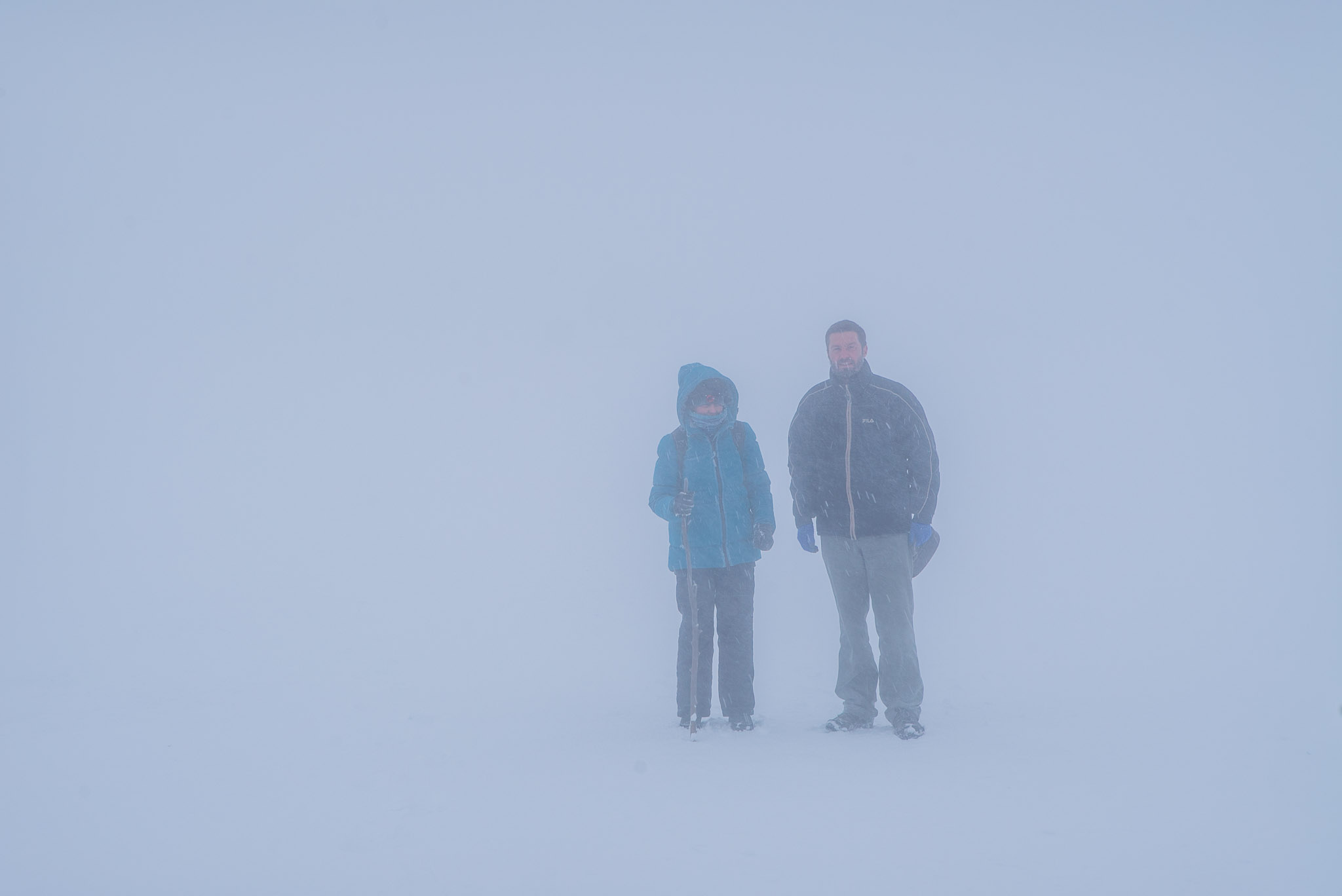 Trotz arktischer Wetterbedingungen ließ ich nicht locker, bis wir den Gipfel erreicht hatten. In 1.800 Metern Höhe konnten wir im eisigen Wind und dichten Nebel aber nur kurz verharren.