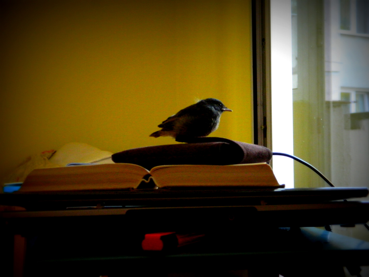 Dieser kleine Vogel kam durch die Balkontür geflogen und machte es sich in meinem Büro breit, während ich in der Dusche war. Als ich an den Schreibtisch zurückkam, wollte er nicht weichen, sondern blieb einfach neben mir sitzen – bis ich schließlich ein Foto von ihm machte; wie wenn genau das der Zweck seines Besuchs gewesen war.