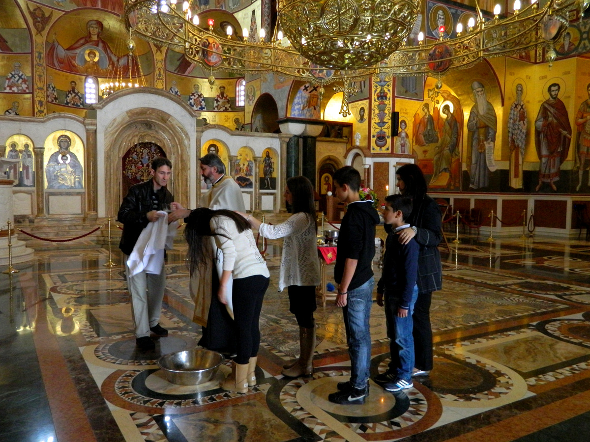 Marko stellt sich als ziemlich religiös heraus, er zündet Kerzen an, küsst Ikonen, verbeugt sich vor Altären. Mit viel Weihrauch und Gesang ist gerade eine Taufe im Gange.