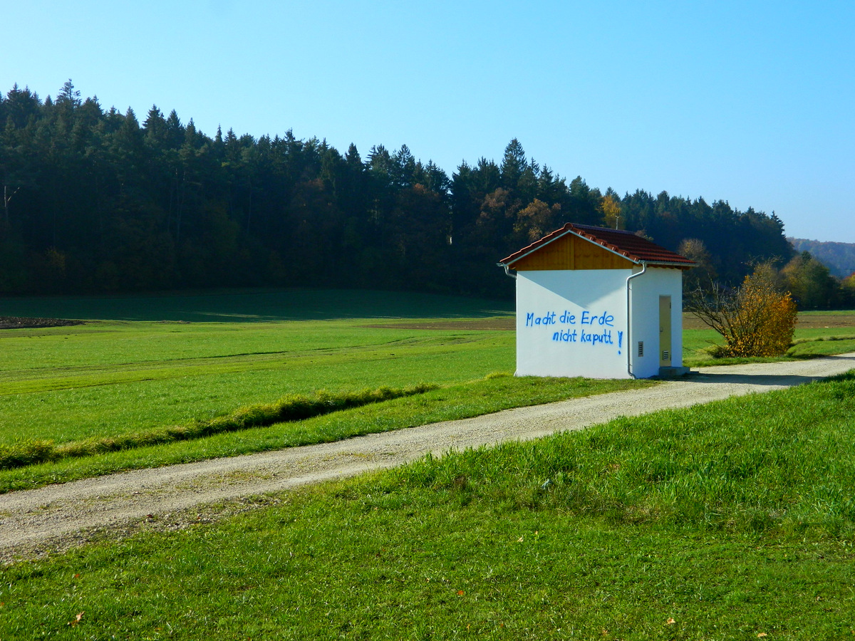 Wenn anderswo zum Töten politischer Gegner oder zum Völkermord aufgerufen wird, findet man beim Spazierengehen zwischen Ammerthal und Amberg eine Warnung vor der Zerstörung unseres Planeten.