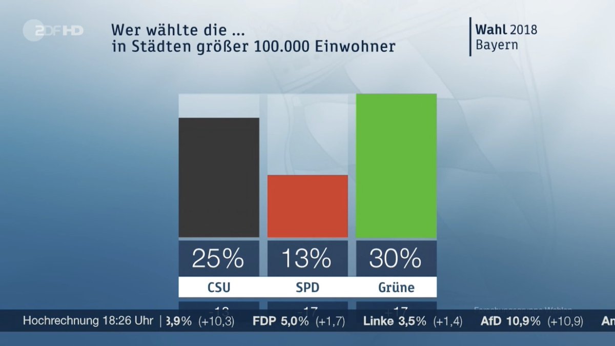 2. Ich finde es interessant, dass sich das linke Lager in Bayern seit Jahrzehnten bestenfalls im Bereich von 30% bewegt. Wie du richtig sagst: Die linken Wähler scheinen aktuell nur von einer linken Altpartei zu einer linken (fast schon bürgerlichen) Hipster-Partei zu wechseln.