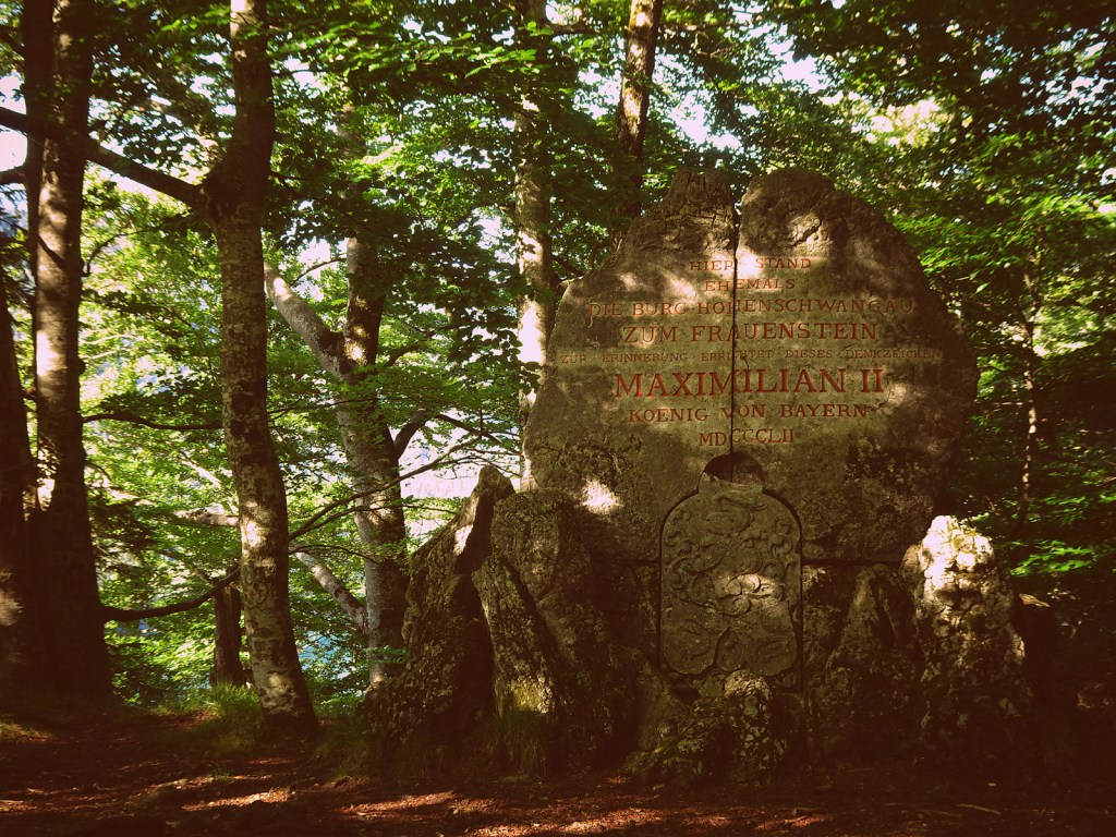 An der Stelle des Schlosses stand schon lange eine Raubritterburg, die immer wieder belagert und zerstört wurde, zuletzt von Napoleon, der sich anscheinend nicht einmal von der entspannenden Bergseekulisse beruhigen hat lassen. (Komisch, dass sich jeder über Japaner und Chinesen, aber niemand über Franzosen echauffiert.) Danach wurde die Burg 30 Jahre vergessen, bis Kronprinz Maximilian auf einer Wanderung die Ruine entdeckte, was, wie ich als erfahrener Wanderer bestätigen kann, durchaus mal passiert. Der spätere König Maximilian II., der Vater von Ludwig, kaufte die Burg und ließ sie als königliches Ferienhäuschen herrichten, was, wie ich Euch als erfahrener Wanderer sagen kann, sehr selten passiert.
