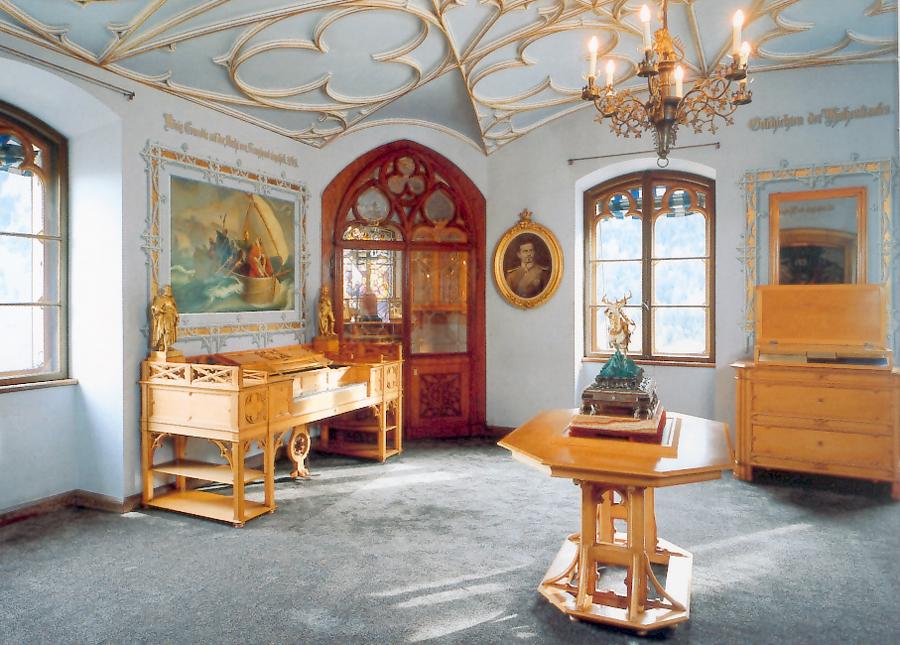 Hohenschwangau ist ganz im Geist der historisierenden Spätromantik gehalten. Aus Angst, dass die Kinder keine Bilderbücher lesen, haben die Königseltern die Wände aller Räume mit Bildgeschichten aus der mittelalterlichen Sagenwelt und der Familiengeschichte verziert.