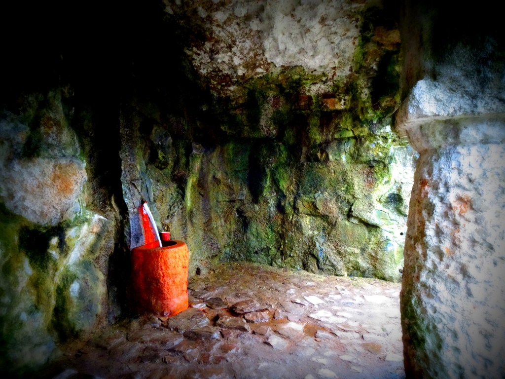 Hier werde ich nichts zu essen bekommen, dämmert mir langsam. Nur in der Grotte oberhalb des künstlich angelegten Wasserfalls gibt es noch Wasser, und sogar eine Tasse steht neben dem Becken. Wahrscheinlich hat der König von Montenegro zum letzten Mal aus ihr getrunken. Oder die Kobolde und Gnome, die Kyselka jetzt anstelle der Könige und Grafen bewohnen. Aber es schmeckt.