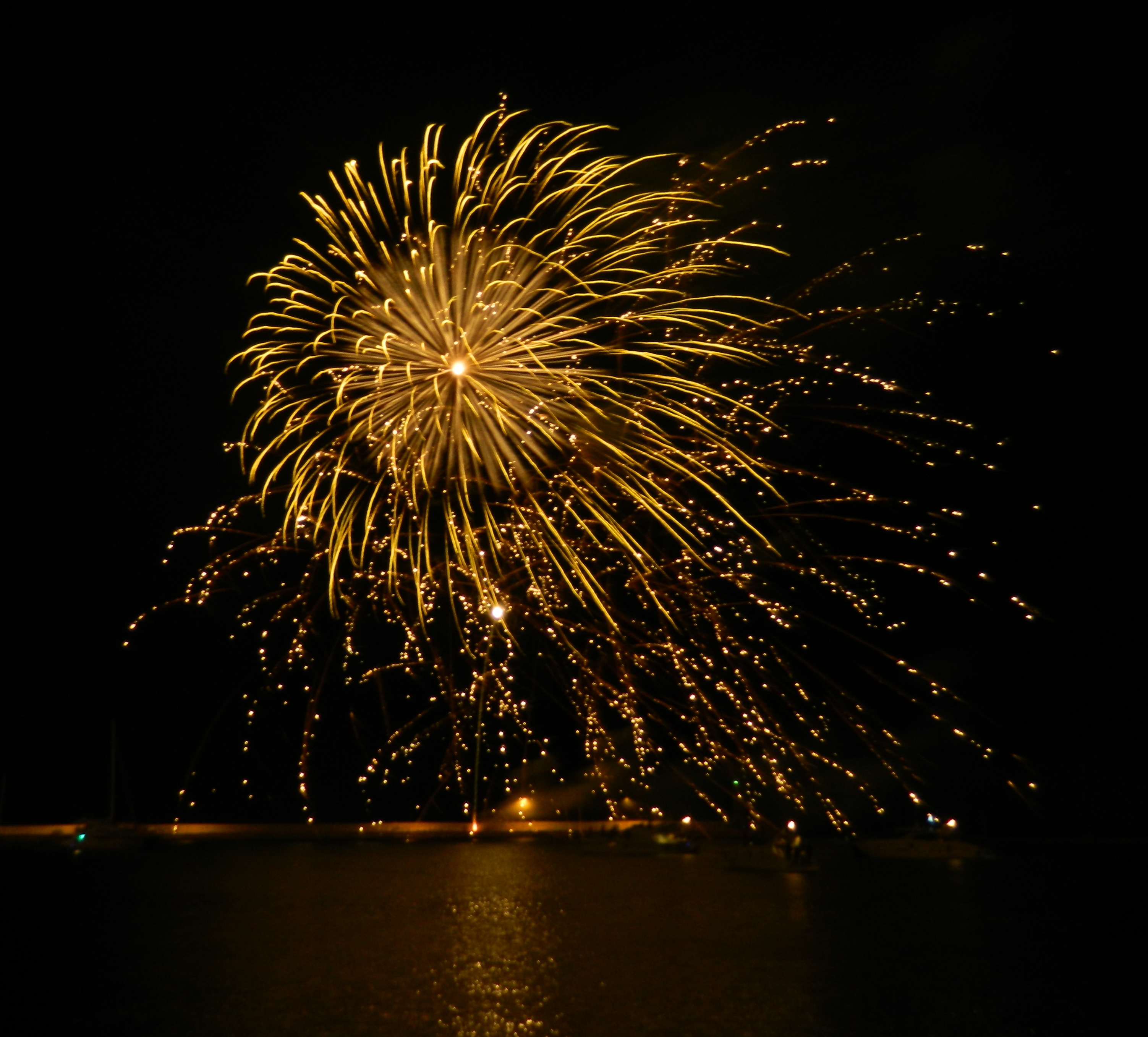 Unterhalb der Mole, wo ich es mir gemütlich zu machen versuche, ist leider der Platz, der von Jugendlichen den ganzen Abend über zum Pinkeln benützt wird, nachdem sie sich in der Hafenbar mit Bier versorgt haben. Hier werden heute Hektoliter an Peroni-Bier ins Meer fließen. Ich merke mir vor, morgen keine frisch gefangenen Fische zu kaufen. Der Gestank von Marihuana konkurriert mit dem Weihrauch. Ich ziehe also an der Uferpromenade weiter nach Süden, bis es etwas lichter wird und finde so, ganz zufällig, den perfekten Platz um das Feuerwerk zu bewundern. Es spiegelt sich so im Hafen, dass es den Effekt verdoppelt. Ab jetzt wird für mich jedes Feuerwerk ohne Wasser nur mehr ein halbes Feuerwerk sein.