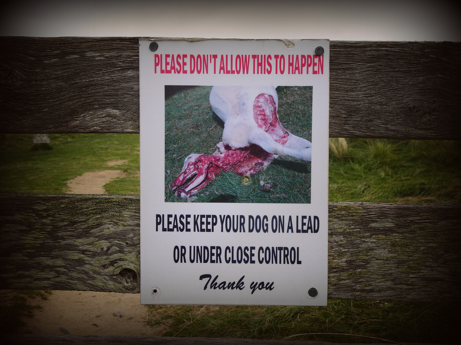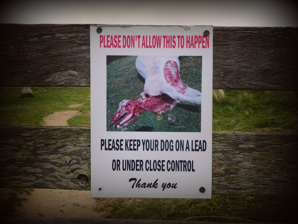 Heute treffe ich keinen Wander- und Gesprächspartner. Alle, die unterwegs sind, haben schon Begleitung, entweder Mensch oder Hund. Wobei die Schafhirten die Hunde gar nicht gerne sehen, denn die Schafe sind anscheinend so pazifistisch, dass sie sich selbst von einem Dackel zerfleischen lassen, wie ein grausames Foto an einem Zaun eindringlich vor Augen führt.