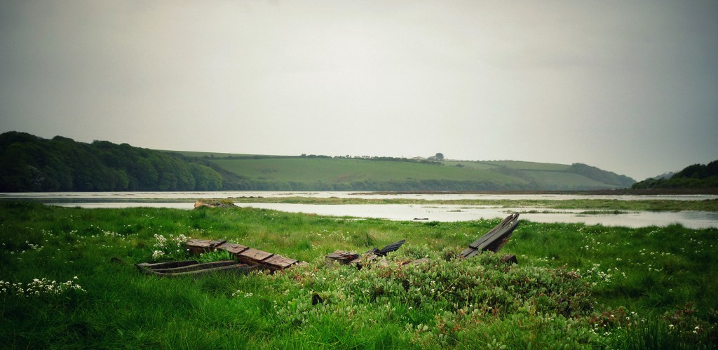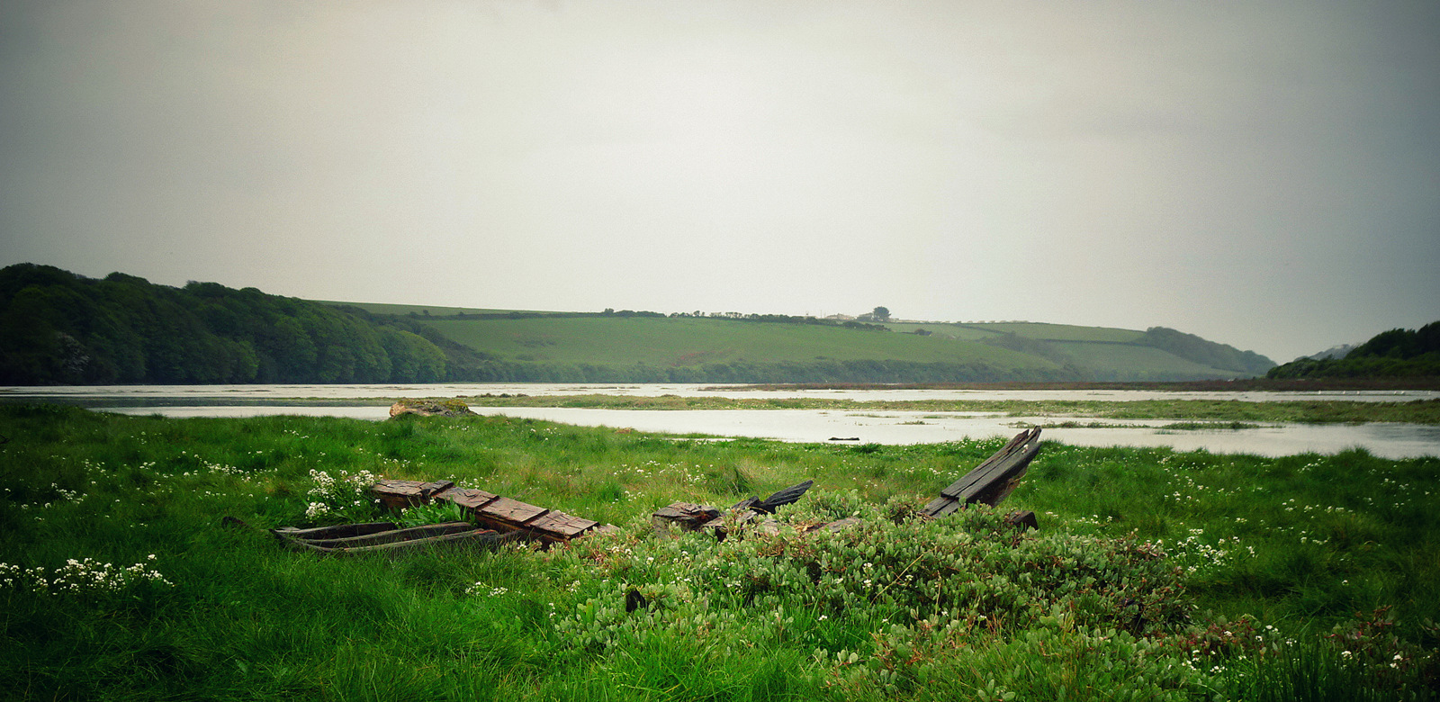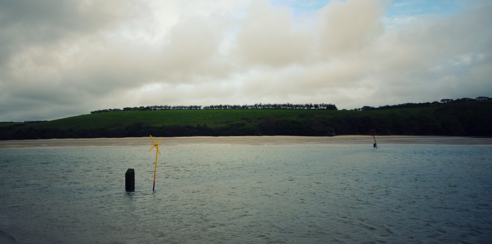 Wenn ich ein Kapitänspatent von Dartmouth hätte, dann hätte ich auch gewusst, was ein Ästuar ist. Das ist so ein Zwischending zwischen Flussdelta und Meeresarm. Und nun weiß ich auch, wieso das kleine Bächlein so ein riesiges Flussbett braucht: Es füllt sich nämlich zweimal am Tag mit dem von der übermütigen Flut herangeschwemmten Wassermassen.