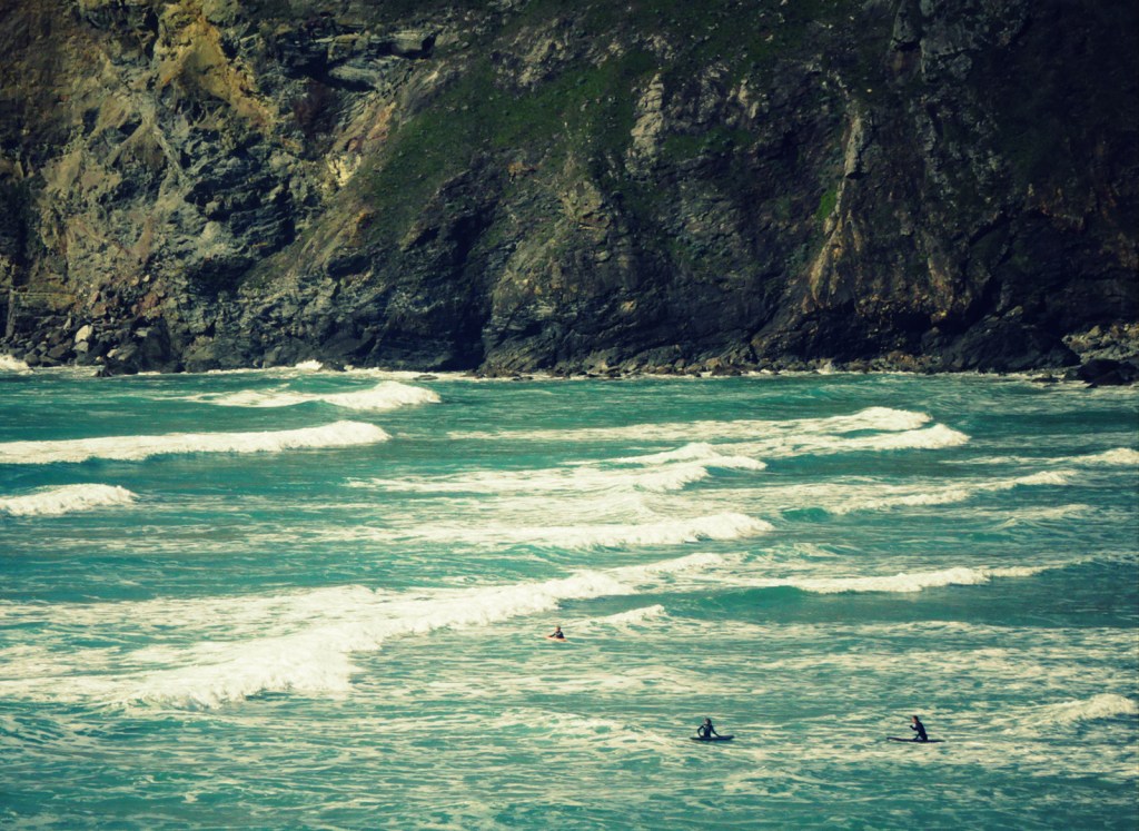 Ich gehe runter zum Strand, denn auch wegen des Meeres bin ich nach Cornwall gekommen. Ganz allein bin ich an diesem frühen Morgen. Alle Wellen nur für mich.