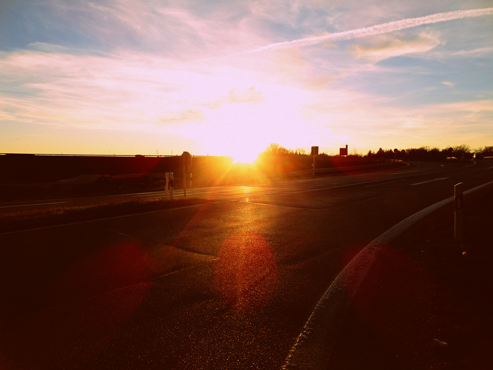 Als die Sonne, erschöpft vom langen Arbeitstag und weil sie anderswo auf diesem Erdball gebraucht wird, hinter dem Horizont versinkt, muss ich gehen. Hier gibt es keine Laterne, kein Licht, und niemand wird mehr halten.