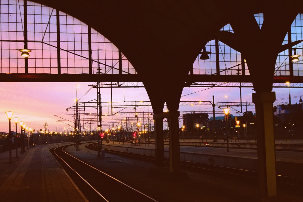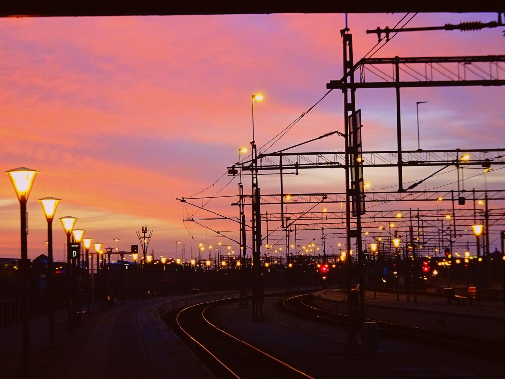 So verschlafen wie die Stadt, so verschlafen ist der Bahnhof. Die ganze Halle ist leer, noch kein Zug ist wach. Ganz allein beobachte ich den romantischen Sonnenaufgang. Was für eine Wonne, diese Sonne, dichtet mein von der Müdigkeit zerfrorener Körper. Diese Kombination aus der Energie des fernen Feuerballs und den Gleisen, Drähten, Signalanlagen, Schienensträngen ist irgendwie schön. Und alles ist bereit für einen neuen Tag. Einen weiteren Tag, an dem Menschen sicher und zuverlässig durchs Land, über den Kontinent und, so sie wollen, um die Welt befördert werden. Die Eisenbahn ist doch das perfekte Transportsystem. Anders als im Flugzeug kann man überall aussteigen, die Richtung wechseln, eine Pause einlegen. Anders als im Auto muss man sich nicht konzentrieren, sondern kann abschalten, genießen, plaudern, lesen. Sogar schlafen, wenn man mehr Talent dazu hat als ich. Man hat viel mehr Platz und Bequemlichkeit als im Flugzeug, Bus oder Auto. Wenn einem langweilig ist oder man den Gesprächspartner wechseln will, steht man auf und geht in den nächsten Wagen. Man kommt mitten in der Stadt an anstatt 30 km außerhalb. Man hat keine Parkplatzprobleme, keine unerwarteten Nebenkosten, keine Punkte in Flensburg. Und die Eisenbahn hat einfach Stil, Eleganz und Romantik.