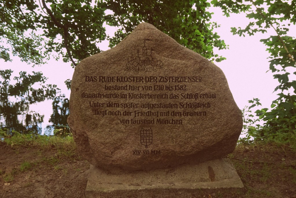 Neben dem Schloss liegt ein See, der sich gemütlich umwandern lässt. Und mit umso mehr atheistischer Freude, wenn man erfährt, dass auf dem Grund des Sees das Rüdekloster liegt, das durch Überflutung säkularisiert wurde.