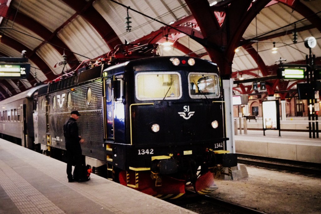 Zeit für den letzten Zug dieser Reise. Die schwere, schwarze Lok sieht aus, wie wenn sie bis zum Nordpol durchfahren könnte. Aber selbst da fliegen die Leute jetzt lieber hin. Der Zug von Malmö nach Stockholm ist der gemütlichste von allen. Polstersessel wie aus den 1950ern. Holzfurniere wie aus den 1960ern. Ein weicher Teppich. Ein Restaurant an Bord. Und ein netter und quietschvergnügter Schaffner, der sich besonders freut, wenn er verkünden kann, dass wir in Mjölby zwei Minuten früher ankommen. Und bald darauf: „If nothing obscene happens, we will arrive in Linköping two minutes ahead of schedule.“ Na, dann wollen wir mal anständig bleiben.
