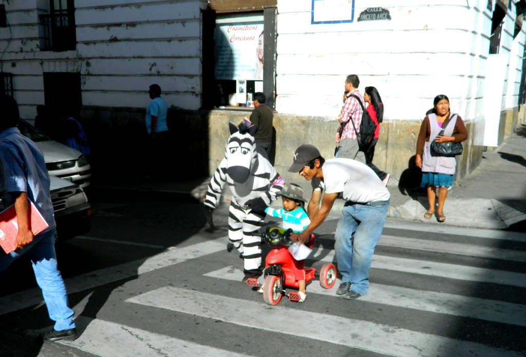Zugegeben, das war lange her und die Draisine steht jetzt im inoffiziellen Eisenbahnmuseum in Sucre, zu dem Euch der Stationsvorsteher Miguel mit einem großen Schlüsselbund Zutritt verschafft, wenn er an dem Tag nichts zu tun hat, was, als ich in Sucre war, zum Glück oder Unglück der Fall war, weil die Brücke zwischen Sucre und Potosí eingestürzt war. In Sucre wurde übrigens der Zebrastreifen erfunden. Und Potosí war mal die reichste Stadt der Welt. Ist aber nicht mehr viel übrig davon, ich habe nachgeschaut.