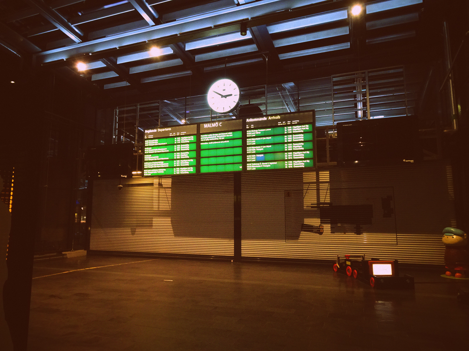 So schnell hätte der Zug gar nicht sein müssen. Denn jetzt stecke ich in Malmö. Der erste Zug weiter nach Stockholm geht um 7:04 Uhr, so dass mir vier Stunden verbleiben. In Schweden ist die Bahnhofspolitik noch restriktiver als in Dänemark. Hier sind die Toiletten einfach ganz verschlossen und öffnen erst um 6 Uhr. Und wenn man nachts mal muss, fragt Ihr Euch? Tja, damit stellt Ihr schon bessere Fragen als die Doldis, die das so entschieden haben.