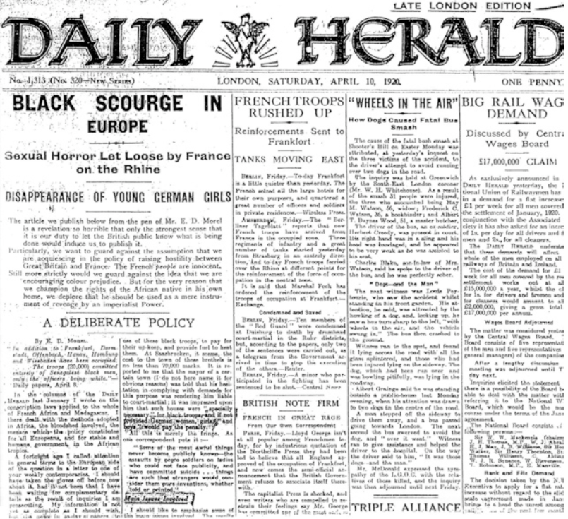 Der Journalist Maximilian Harden berichtete, dass die meisten Freundschaften und Verhältnisse zwischen deutschen Frauen und französischen Soldaten auf beiderseitigem Einverständnis beruhten. (Man darf nicht vergessen, dass nach dem Ersten Weltkrieg Männermangel herrschte und viele Kriegsheimkehrer psychische oder körperliche Wracks waren. Außerdem haben Besatzungssoldaten immer die besseren Zigaretten.) Die aus diesen Beziehungen entstandenen Kinder brachten die Rassisten jedoch erst recht zur Weißglut.