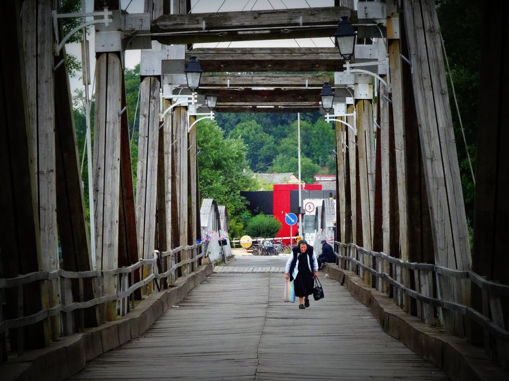 Die rote Farbe am Geländer und auf der Brücke markiert die Grenze. Auf der einen Seite Ukraine, auf der anderen Rumänien. Auf der einen Seite Krieg, auf der anderen Frieden. Auf der einen Seite Wehrdienst und Tod, auf der anderen Universität und Kino.