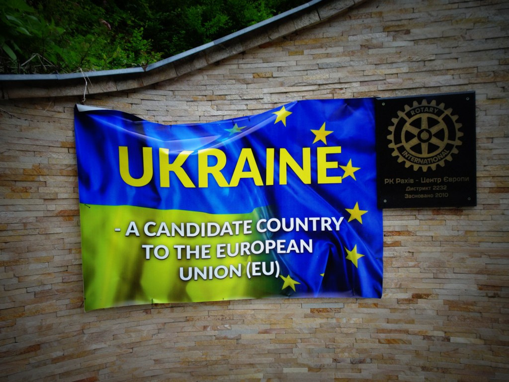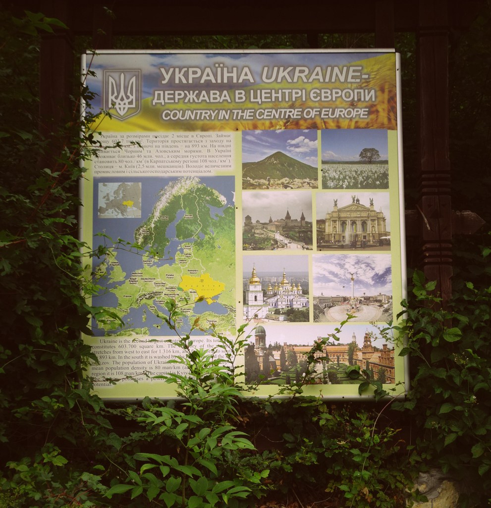 Wie halb Europa kämpft die Ukraine mit dem Problem, dass Westeuropäer glauben, Europa ende an der Oder-Neiße-Linie oder maximal in Prag. (Dass Wien, Athen und sogar Görlitz östlicher liegen als Prag, weiß auch kaum jemand.) Um den EU-Mitgliedschaftsantrag geodätisch zu untermauern, behauptete die Ukraine fortan unter Berufung auf die österreichischen Landvermesser von 1887, nicht nur zu Europa zu gehören, sondern sogar den Mittelpunkt unseres Kontinents zu stellen. Ein Banner verkündet freudig den vor wenigen Wochen erreichten Status als EU-Beitrittskandidat.