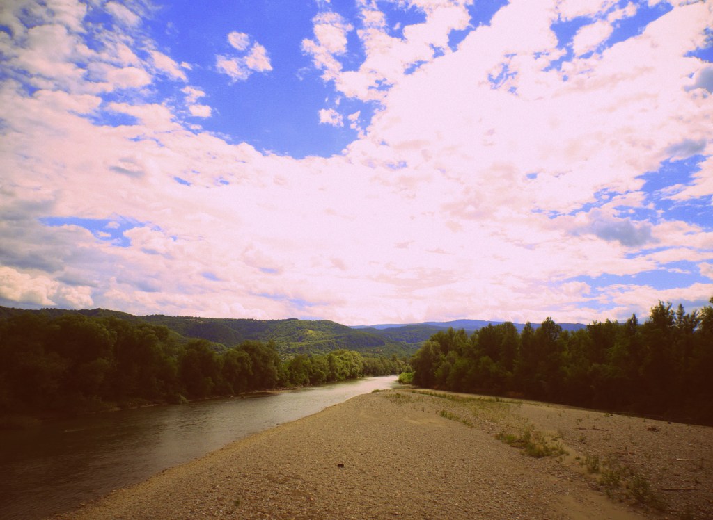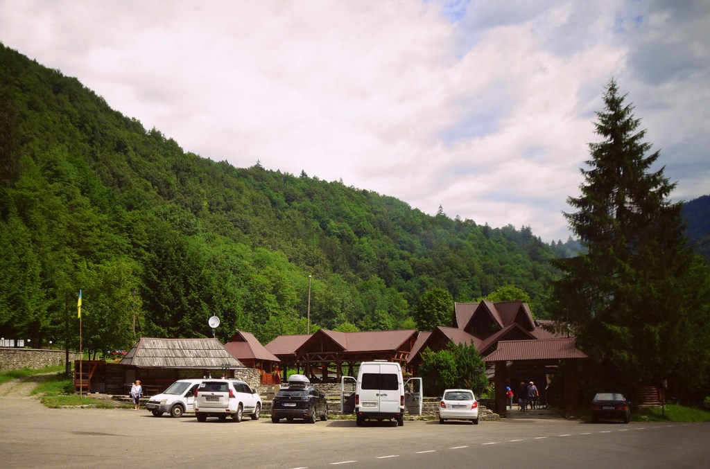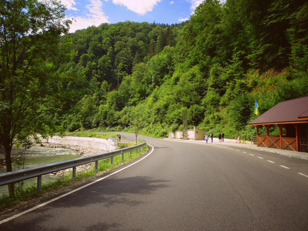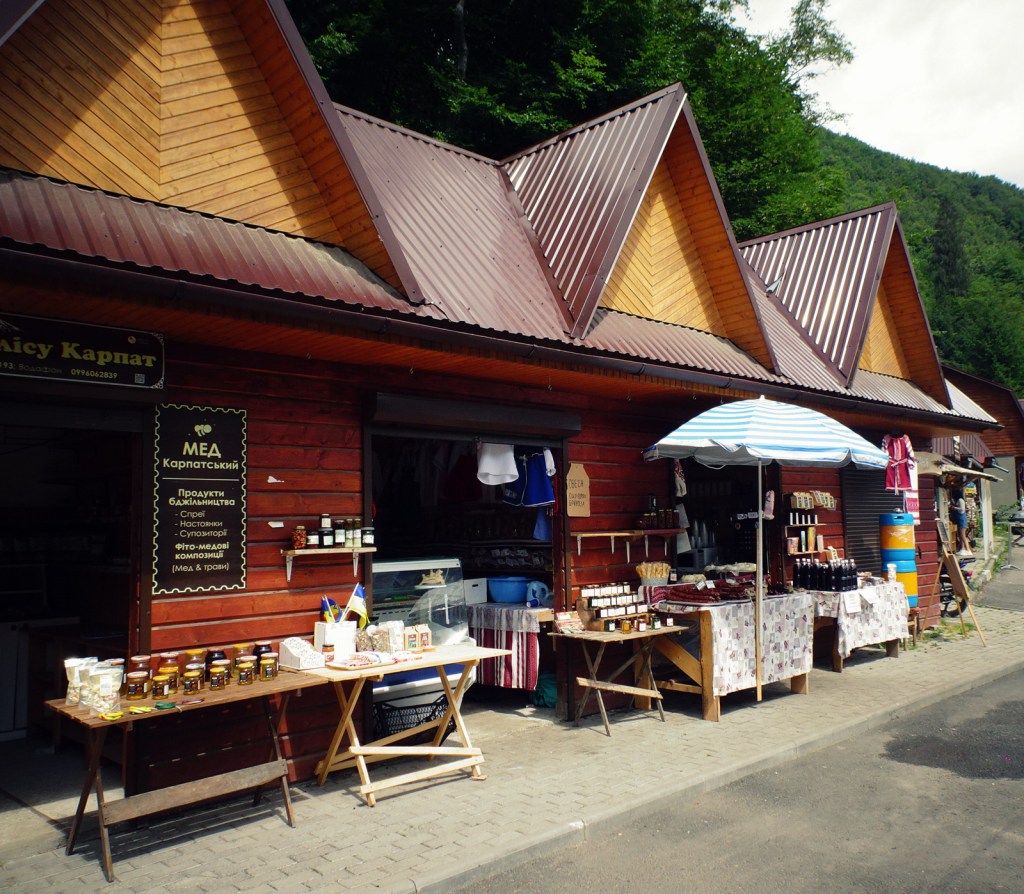 Es ist ein schöner Sommertag. Saftiges Grün. Das Wasser im Fluss rauscht. Der höchste Berg der Ukraine, die Howerla, ist nur 25 km entfernt, aber die Berge hier sind so sanft geschwungen, dass man sie, unabhängig von ihrer Höhe, nur als Hügel wahrnimmt. Die Holzbuden verkaufen Honig, Würste, Schneekugeln und Huzulen-Trachten. Nur ein Junge verkauft etwas Nützliches: Cola und Snickers, für den Fall, dass ich die 30 km über die Berge zu Fuß zurückgehen muss.