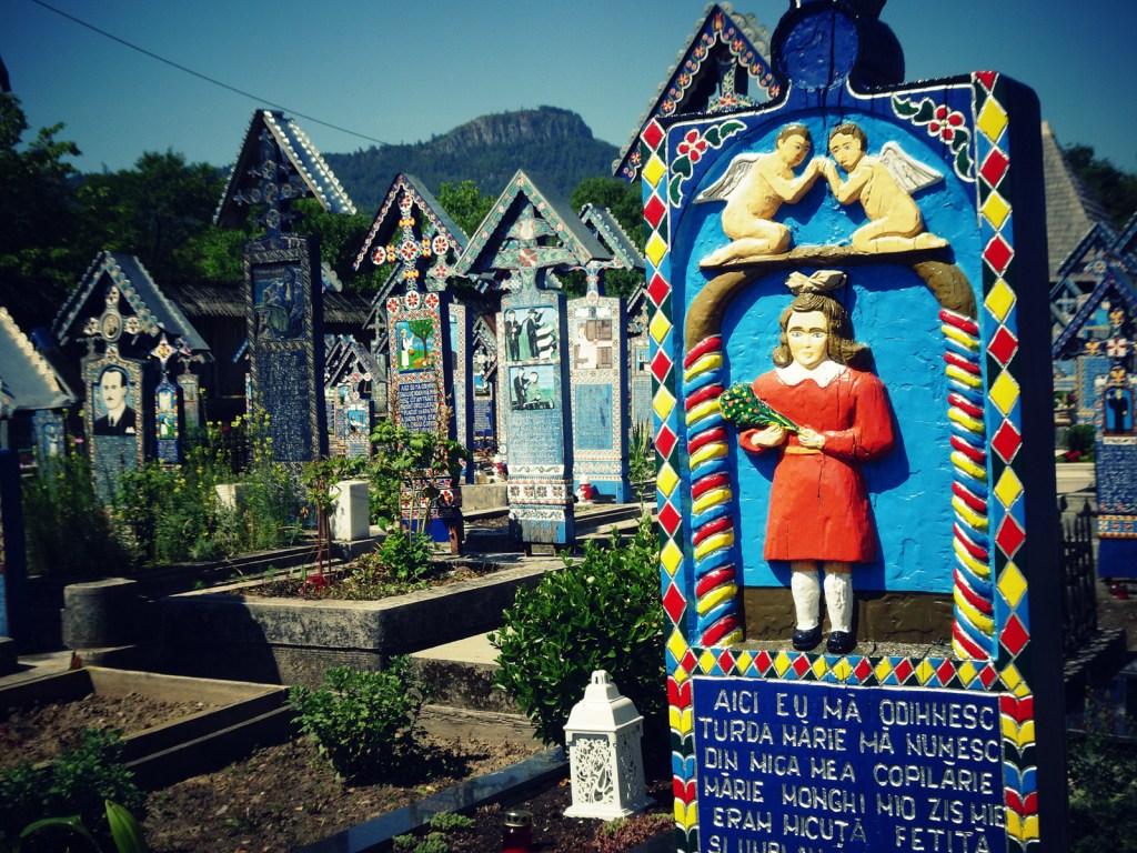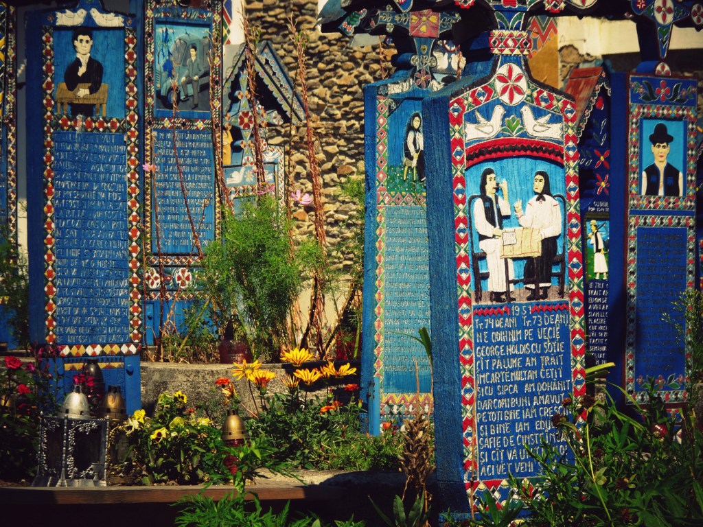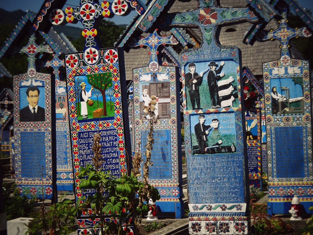 Dieser Friedhof ist deshalb so bekannt, weil hier jede(r) Verstorbene eine Holztafel mit einem persönlichen Bild und einem meist amüsanten Gedicht über sein/ihr Leben erhält.