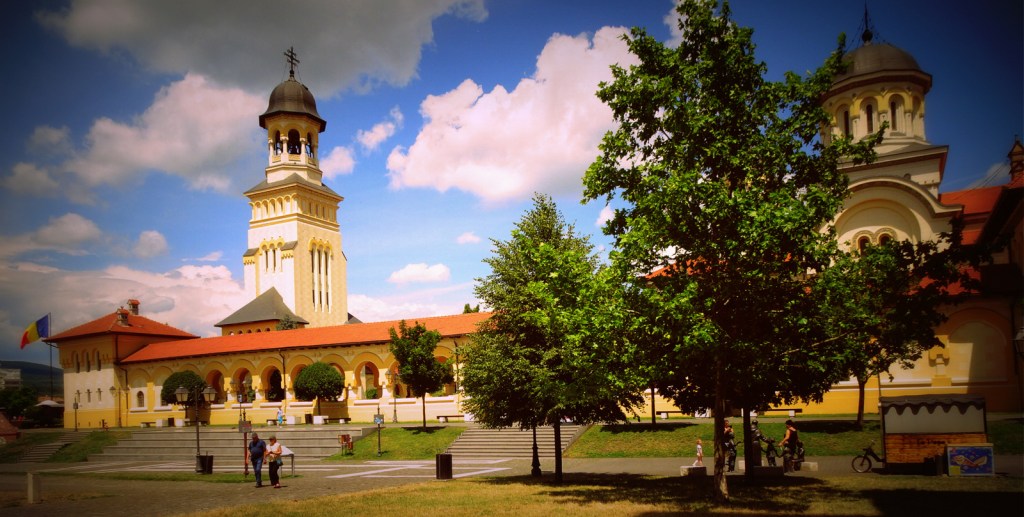 Ich gehe an heißen Tagen gerne in Kirchen, um mich auszuruhen. In der rumänisch-orthodoxen Kirche gibt es jedoch keine Sitzbänke. Zum Glück ist gleich daneben die römisch-katholische, also die ungarische Kirche. Denn die Ungarn (ebenso wie die Deutschen und andere ethnische Minderheiten) durften natürlich weiterhin in Siebenbürgen leben, auch wenn sie seit 1920 rumänische Staatsbürger waren. Man hört in diesem Landesteil beide Sprachen, und es gibt Städte, z.B. Târgu Mureș / Marosvásárhely, wo die Hälfte der Bevölkerung Ungarisch spricht. Und Landschaften wie das Szeklerland, wo 90% Ungarisch sprechen. Wichtig ist nur, wie hier in Alba Iulia, dass die ungarisch-katholische Kirche niemals höher ist als die rumänisch-orthodoxe.