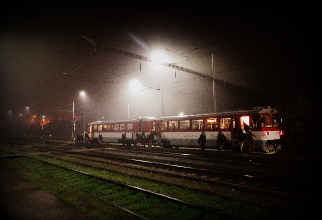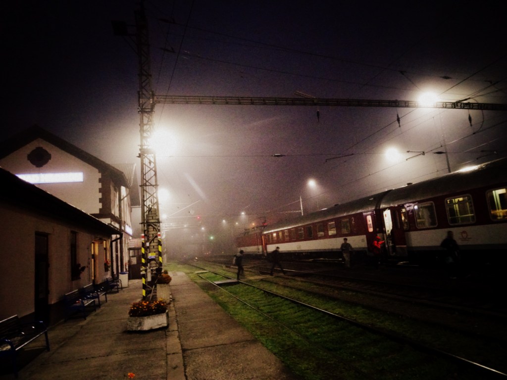 Aber dies ist ein realistischer Reiseblog. Deshalb möchte ich Euch nicht vorenthalten, dass eine Zugreise auch Momente umfasst, an denen Ihr an einem Oktobermorgen noch vor 6 Uhr am Bahnhof von Žiar nad Hronom in der Slowakei (deutscher Name des Ortes: Heiligenkreuz an der Gran) steht und auf den Zug nach Šurany (deutscher Name des Ortes: Schuran) sowie die aufgehende Sonne wartet.
