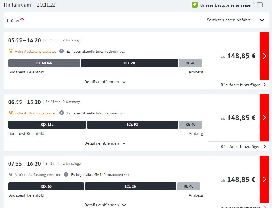 Lasst mich das an einem aktuellen Beispiel demonstrieren: Am kommenden Wochenende will ich von Budapest (Ungarn) nach Amberg (Deutschland) fahren.