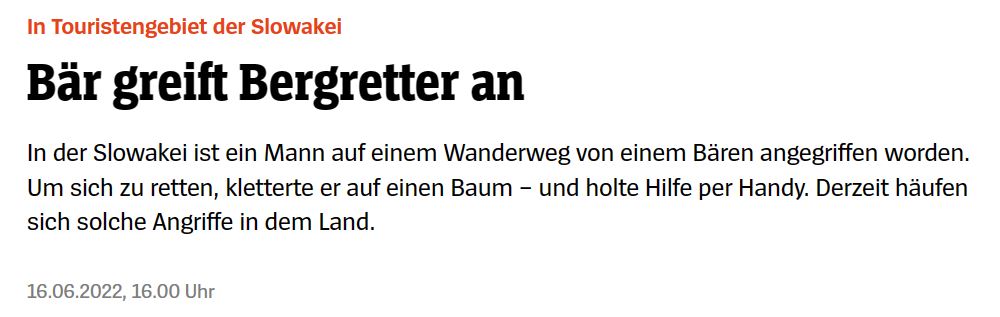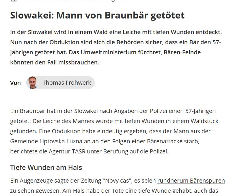 Es fiel mir natürlich erst nachträglich auf, als ich in der Zeitung von einem Bärenangriff in der Slowakei las. Und dann recherchierte ich und musste erkennen: Hoppla, das war kein Einzelfall.