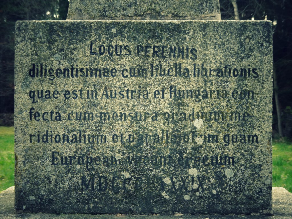 Die Inschrift – Locus Perennis Dilicentissime cum libella librationis quae est in Austria et Hungaria confecta cum mensura gradum meridionalium et parallelorum quam Europeum – war so mysteriös wie die Runenschrift von Arne Saknussemm, die einst Professor Lidenbrock und seinem Neffen Axel den Weg zum Mittelpunkt der Erde wies. Viele lateinunkundige Leserinnen und Leser haben sich daran schon die Zähne ausgebissen.