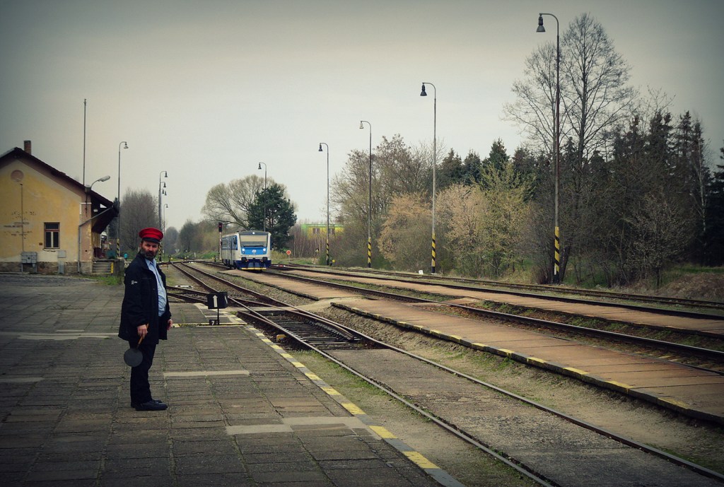 Für die Rückfahrt von Třeboň nach Budweis nehme ich die Eisenbahn. Die einfache Strecke wären circa 25 km nach Westen, aber der Zug fährt zuerst nach České Velenice (Böhmisch Gmünd) im Südosten, wo ich in einen anderen Zug zurück nach Westen umsteigen muss. Der Umweg von etwa 80 km ist notwendig, weil auch 100 Jahre nach dem Ende des Habsburger-Reiches alle Bahnlinien sternförmig von Wien ausgehen. – Womit die Frage, wo der Mittelpunkt Europas liegt, eigentlich geklärt wäre.
