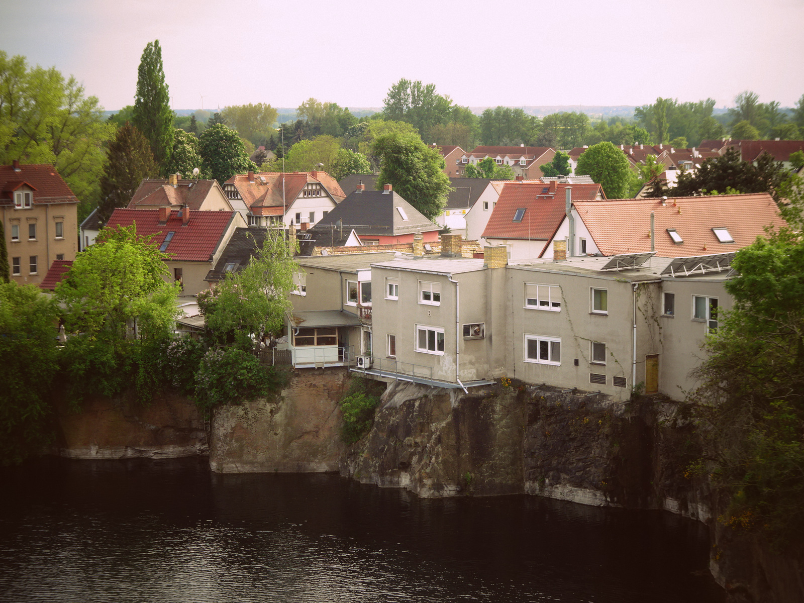 Das ist zwar blöd für Beucha (weil ständig Betrunkene ins Loch torkeln), aber die einzige andere Quelle für rötlich schimmernden Stein wäre auf der anderen Seite der Welt gewesen: der Ayers Rock in Australien.
