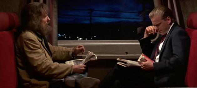 Die Bahn-Sicherheitsangestellten liefern sich einen Kampf mit den Radfahrern, die unbedingt ihre geliebten Fahrräder mit in den Zug nehmen wollen. Der Schaffner sieht es locker, solange noch Platz ist, aber die beiden Schlagstockmänner wollen am liebsten losschlagen.