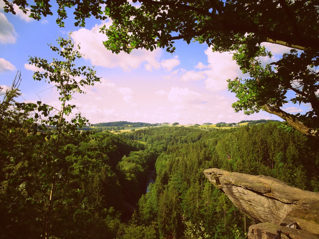 Die Landschaft hier heißt Wolkensteiner Schweiz, so wie Bayerisch Kanada, wo neben dem Schwarzen Regen ebenfalls eine wunderschöne Eisenbahnstrecke führt. Ihr seht, so ein 49-Euro-Ticket rentiert sich wirklich!