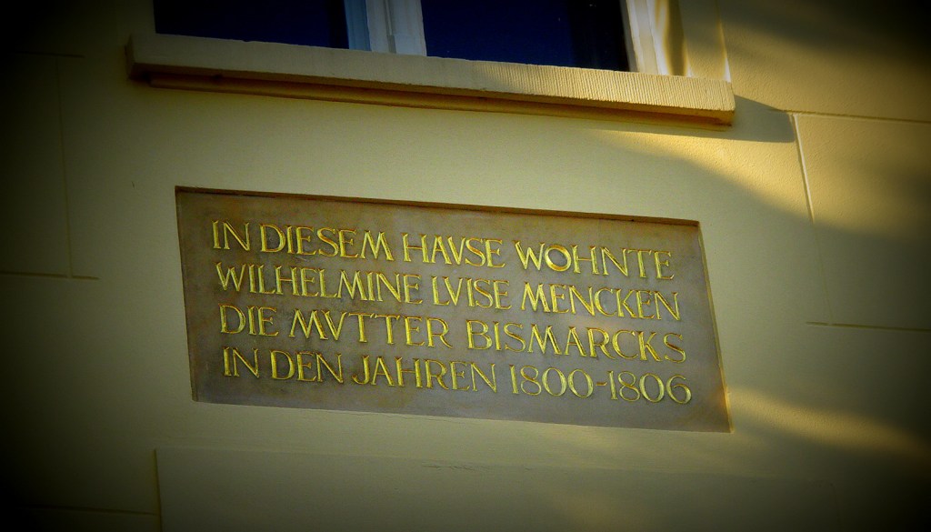 Der stolze Hinweis auf die Mutter Bismarcks, die hier von 1800 bis 1806 lebte, ist allerdings ein bisschen irreführend. Wilhelmine Luise Mencken war in dieser Zeit noch ein Kind und keine Mutter, von nichts und niemanden. Otto von Bismarck wurde bekanntlich erst 1815 auf dem Wiener Kongress geboren.