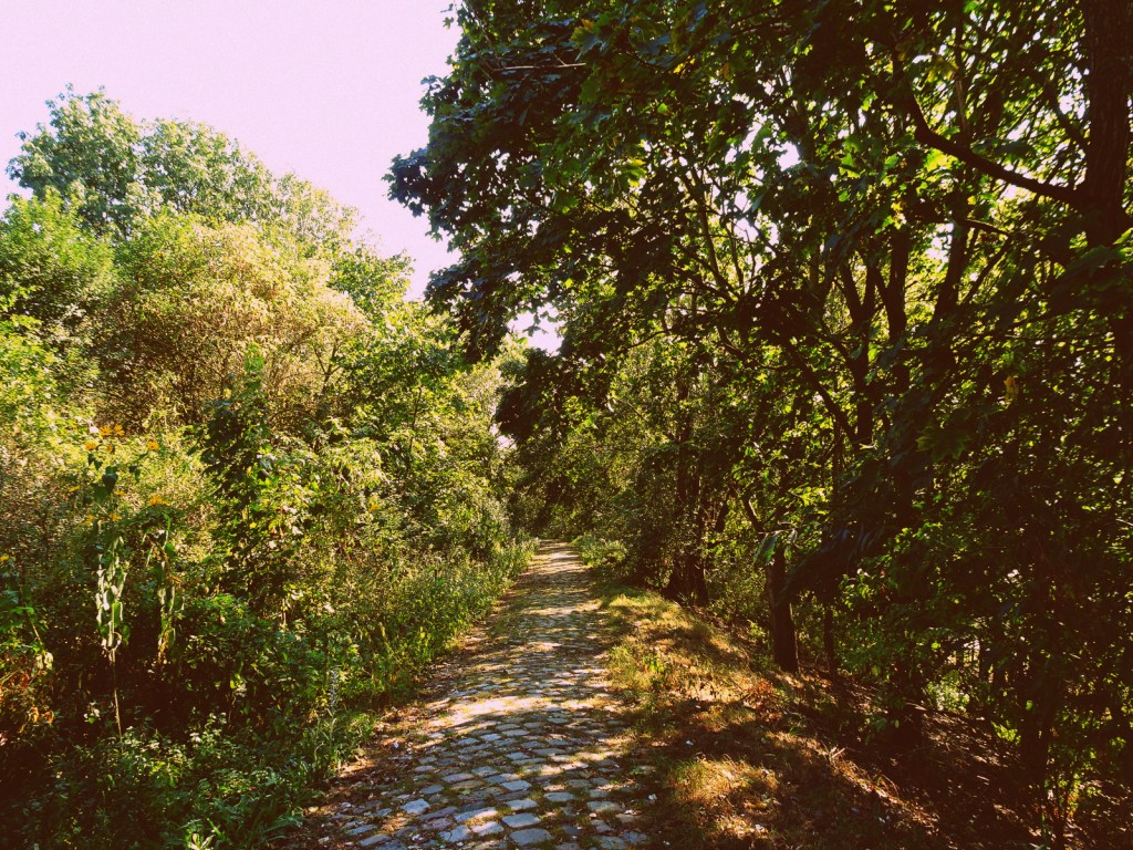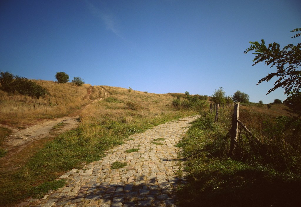 Die gepflasterten, aber ganz offensichtlich von Pferdefuhrwerken über die Jahrhunderte ausgetretenen Wege erinnern mich an die Inka-Straßen, auf denen ich einst am Titicaca-See entlang wandelte. (Das ist übrigens der schönste Ort der Welt, falls Euch mal jemand – oder Ihr Euch selbst – fragt.)