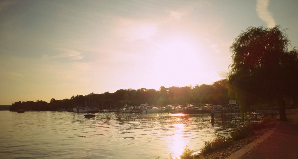 Die Fähre überquert die Havel nur einmal pro Stunde, und ich habe genau die richtige abgepasst, um den Sonnenuntergang zu erleben.
