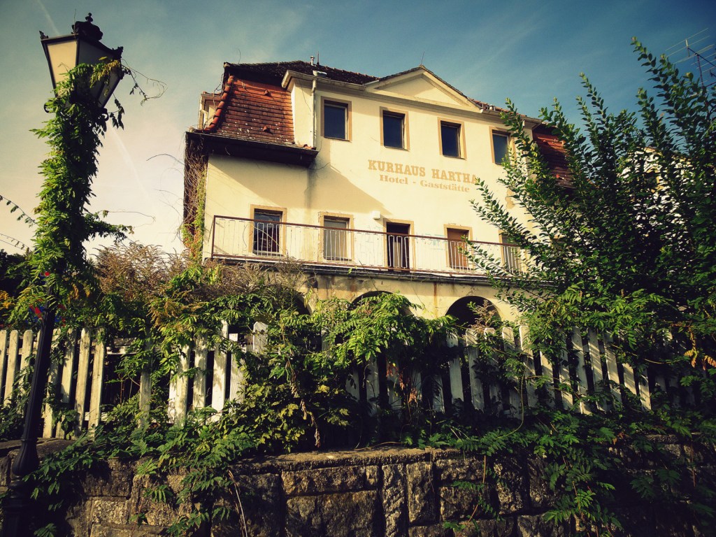 Und tatsächlich. Der Kurort Hartha, ein kleiner nur, nicht zu vergleichen mit Baden-Baden oder Marienbad. Seine Blütezeit scheint vorüber zu sein, im Kurhaus finden schon lange keine Sportgymnastik und kein Bingo-Abend mehr statt. An einem Gartenzaun ruft ein Plakat zum Einkauf bei örtlichen Händlern auf. Links und rechts davon sind leere Ladengeschäfte zu vermieten.