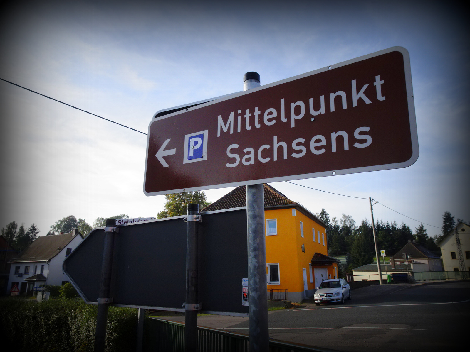 Die nächste verlockende Ablenkung steht in Naundorf, wo ein Schild auf den Mittelpunkt Sachsens hinweist.