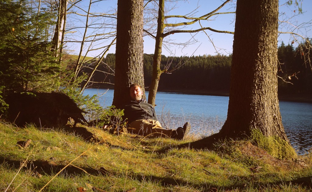 Das mit dem Selbstauslöser ging ganz flott: Da war ein Baumstumpf mit glatter Oberfläche. Ich habe eine Kamera, kein Handy, so dass sie dort gut steht.