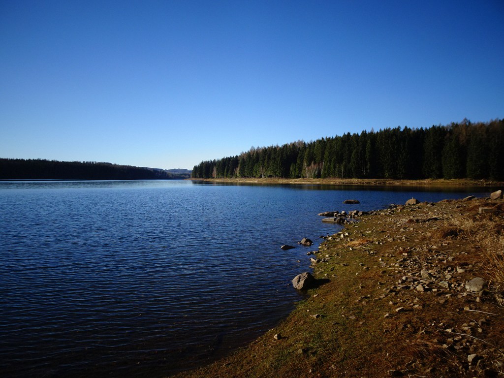 Man muss für diese Wanderung nicht einmal Getränke einpacken, denn die Talsperre dient schließlich der Gewinnung von Trinkwasser. Es sieht absolut klar aus, und schmeckt einwandfrei.