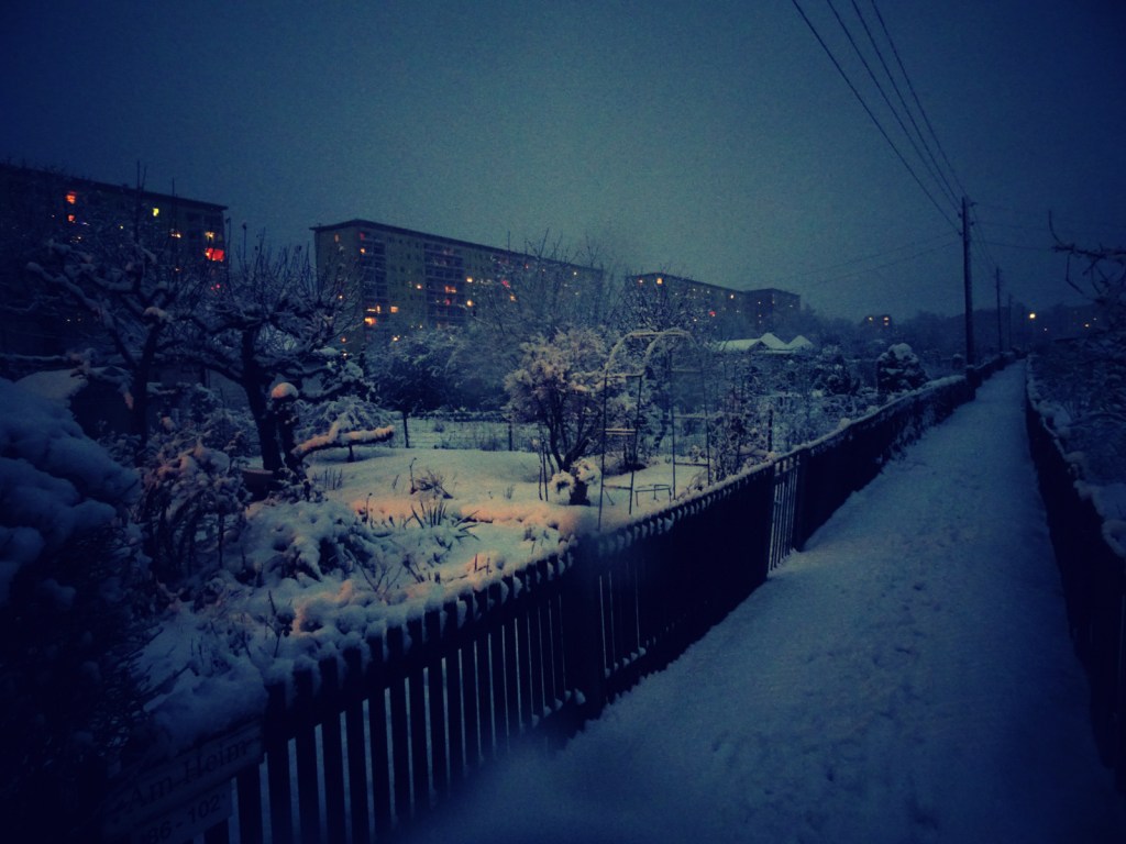 Meine am Vortag noch geäußerte Skepsis wurde gestern Lügen gestraft, als es in Chemnitz so heftig schneite, dass die ganze Stadt mit einer dicken Puderzuckerschicht überzogen war. Und es wollte gar nicht mehr aufhören!