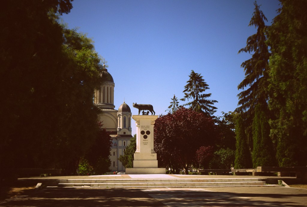 Deshalb steht hier auf dem Platz vor der Kirche die kapitolinische Wölfin mit Romulus und Remus, um ungebildete Touristen daran zu erinnern, dass Rumänien der legitime Nachfolger des Römischen Reiches und überhaupt die Wiege der Zivilisation ist.