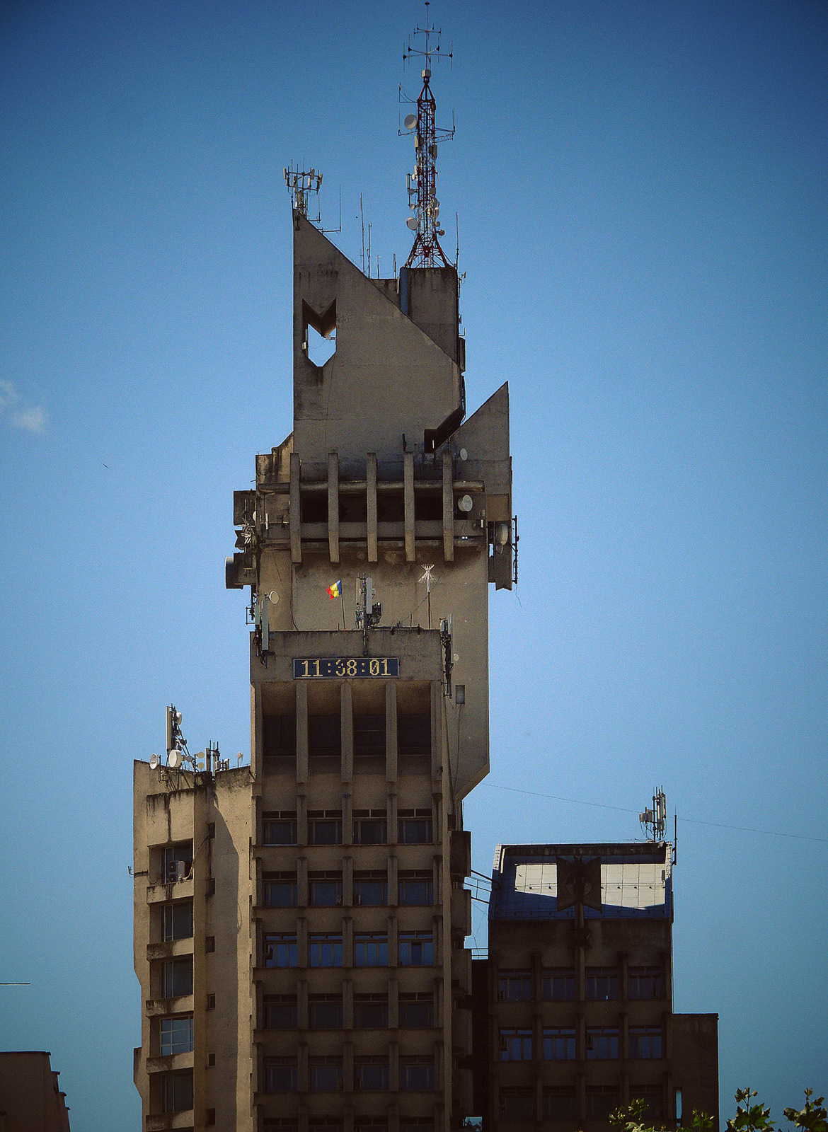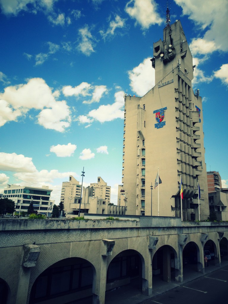 Ich habe schon die ganze Zeit versucht, das Highlight von Satu Mare aus den Fotos herauszuhalten, um es für den Schluss aufzuheben. Das ist nicht ganz einfach, weil der Turm der Kreisverwaltungsbehörde mit seinen 97 Metern alles überragt. Bei der Fertigstellung 1984 war es immerhin der höchste Turm in ganz Rumänien.