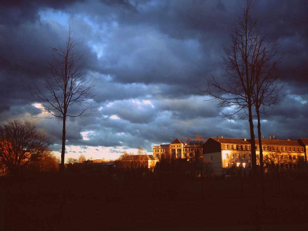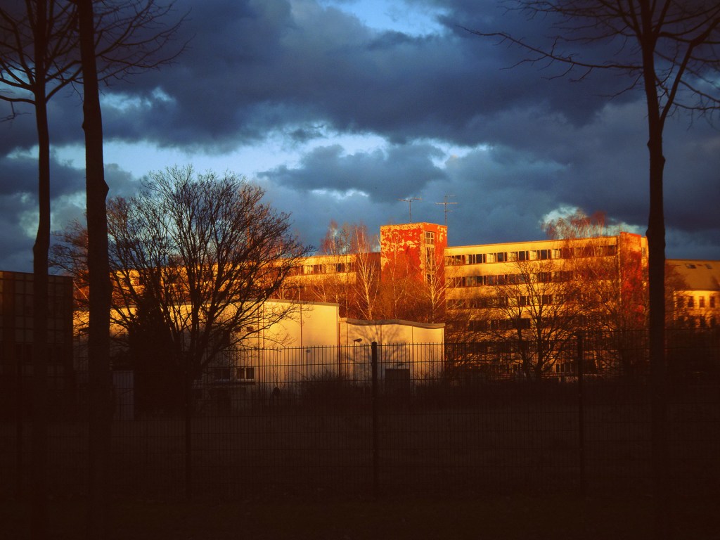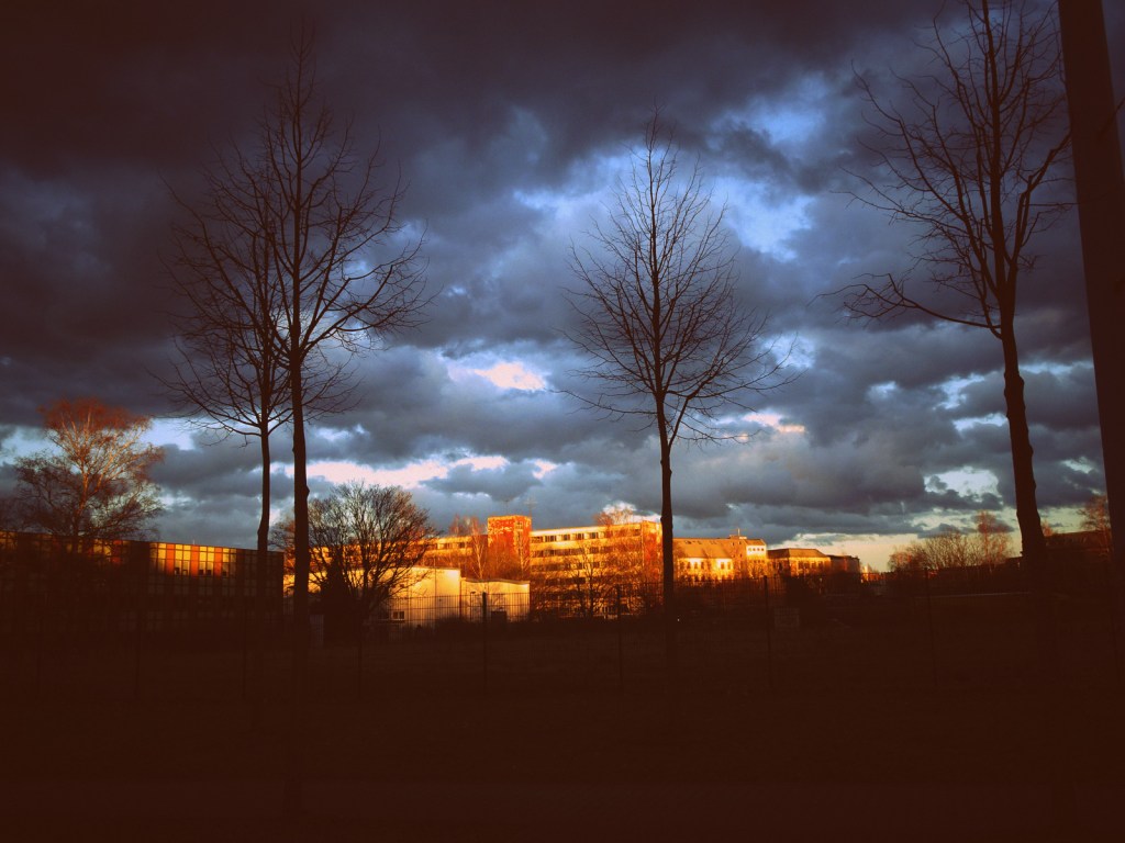 Es muss ein wunderbarer Sonnenuntergang gewesen sein. Ich habe ihn nicht direkt gesehen, weil Bäume, Häuser, Hügel und die ganze Stadt dazwischen waren. Ein richtiger Fotograf hätte eben vorher in den Sonne-, Mond- und Sternenkalender geguckt, hätte sich notiert, wann die Sonne untergeht, und wäre dann auf den Adelsberg, auf den Aussichtspunkt im Zeisigwald oder zu einem Bekannten, der im 10. Stock mit Blick nach Westen wohnt, gefahren.