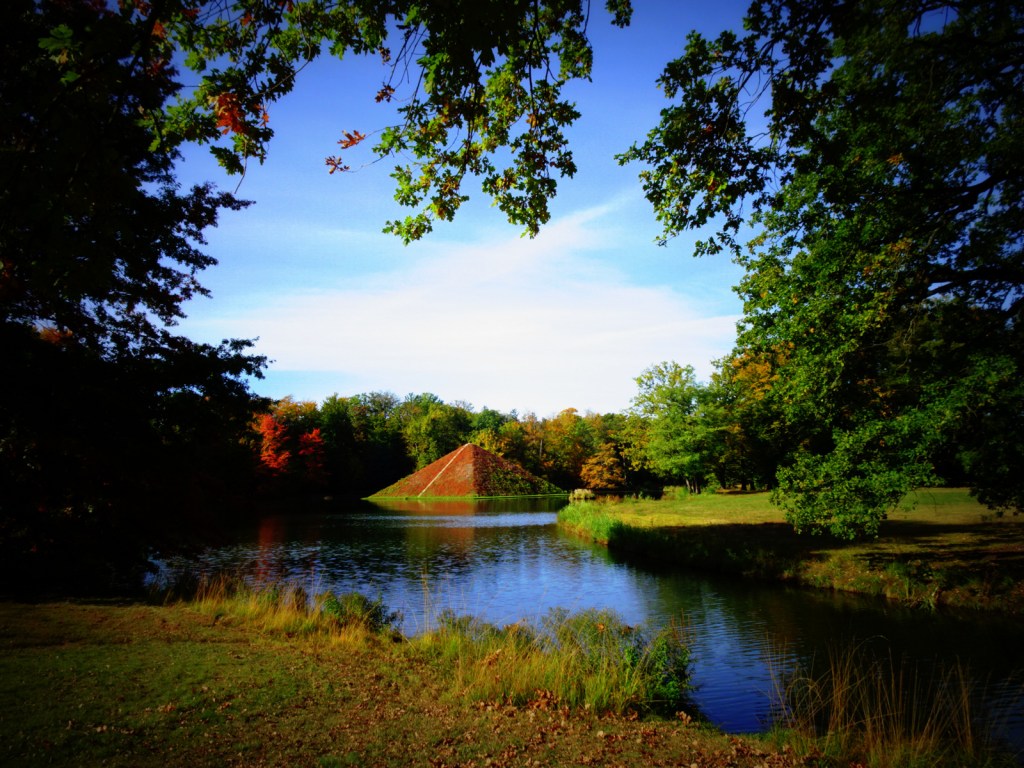 Die englischen Landschaftsparks sind zwar auch künstlich angelegt, aber sie fügen sich in die Begebenheiten der Natur wie Hügelketten oder Flussläufe ein, anstatt alles absolutistisch plattzumachen. Durchsetzt wird das ganze mit Staffagebauten wie Tempeln, Einsiedeleien, Brücken, Grotten. Manchmal, wie im Fürst-Pückler-Park Branitz in Cottbus, taucht sogar in diesen Parklandschaften eine Pyramide auf.