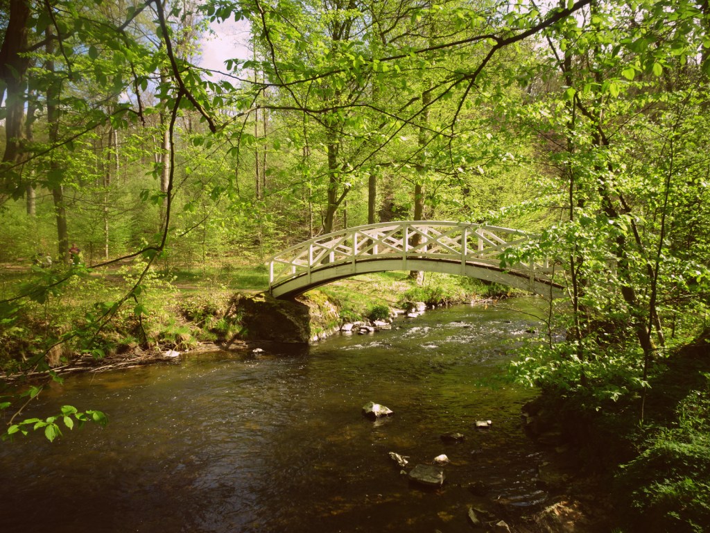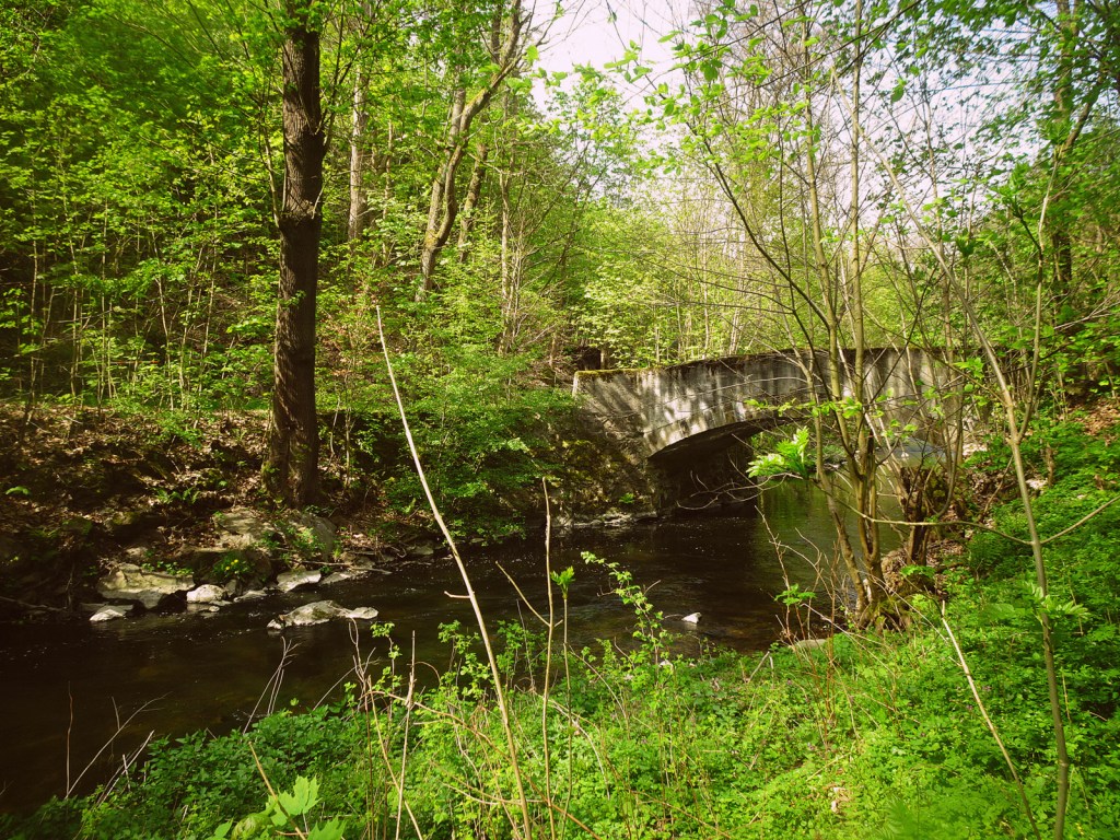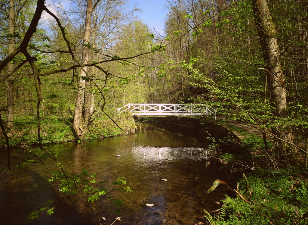 Dafür ist mein Weg umso schöner, denn er führt jetzt durch ein weites Tal in einem Buchen- und Birkenwald, immer an der Großen Röder entlang. Die Große Röder ist nicht so groß, wie sie behauptet, aber bei Gewässernamen wird ja viel getrickst und gelogen. Das Schwarze Meer ist zum Beispiel gar nicht schwarz, das Rote Meer nicht rot. Nur das Tote Meer, das ist echt bald tot. Fast hätte ich gesagt: Wenn Ihr es noch sehen wollt, fahrt schleunigst hin. Aber dann fiel mir ein, dass die Eisenbahnlinie gerade gesprengt wurde. Schade.
