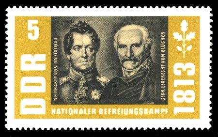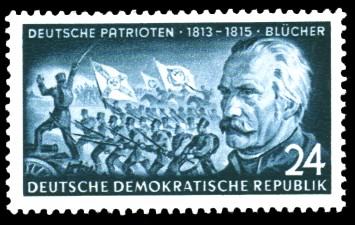 DDR-Briefmarken würdigten nicht nur das eigentlich deutsch-nationale Völkerschlachtdenkmal, sondern auch den preußischen Generalfeldmarschall Fürst Blücher von Wahlstatt, den preußischen Feldmarschall Graf Neidhardt von Gneisenau, den preußischen General von Scharnhorst und das Lützowsche Freikorps – in den Reihen „Nationaler Befreiungskampf 1813“ und „Deutsche Patrioten“.